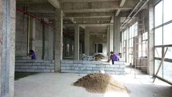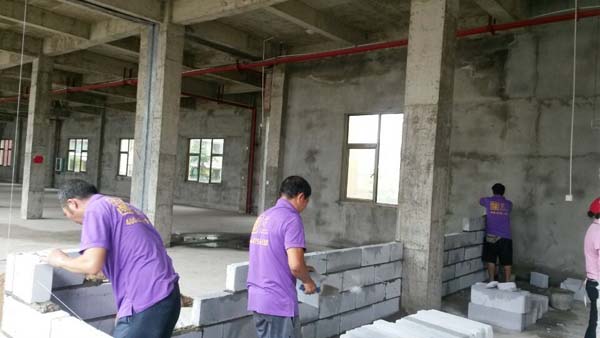 泥水工正在砌墻中