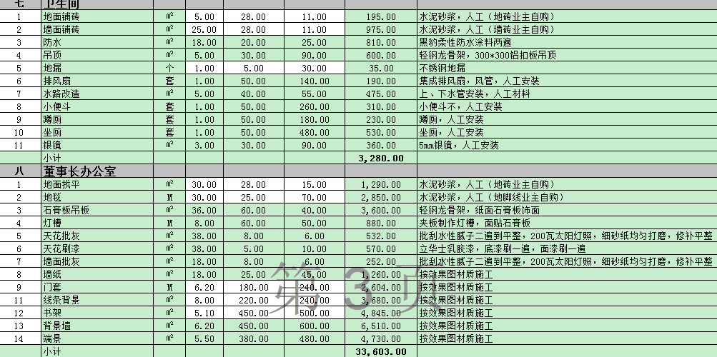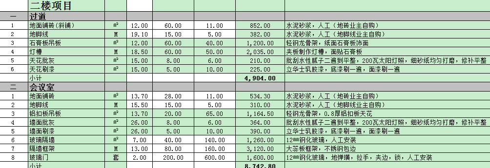 南寧辦公設計基本報價模版參考